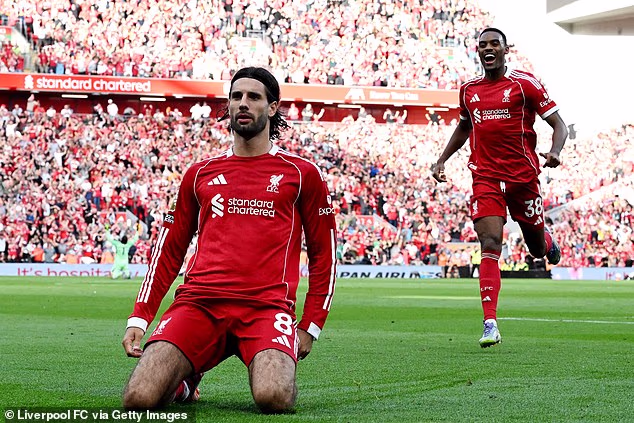 Szoboszlai scored the only goal of the game at Anfield with a superbly struck free-kick in the 83rd minute from 30 yards out.